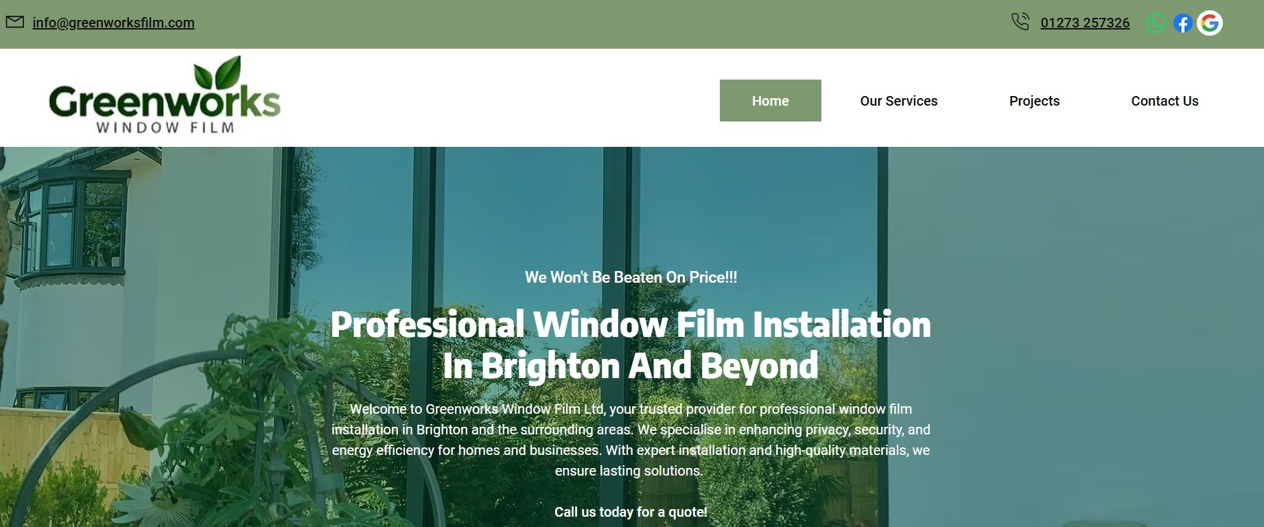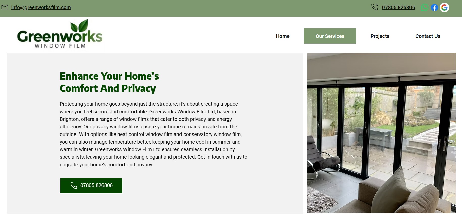 Since August 2022, Greenworks Window Film Ltd has partnered with Safetech to elevate their digital presence. As a trusted provider of high-quality window film solutions in Brighton and surrounding areas, Greenworks specialises in privacy window film, heat control film, and security solutions for homes and businesses. While their services were high-quality, they needed an online presence that reflected their expertise, attracted more customers and converted visitors into clients. That’s where Safetech came in. Our mission was simple: make Greenworks the go-to name in the window film industry by improving their visibility, enhancing their credibility, and ensuring their website worked seamlessly for potential customers.