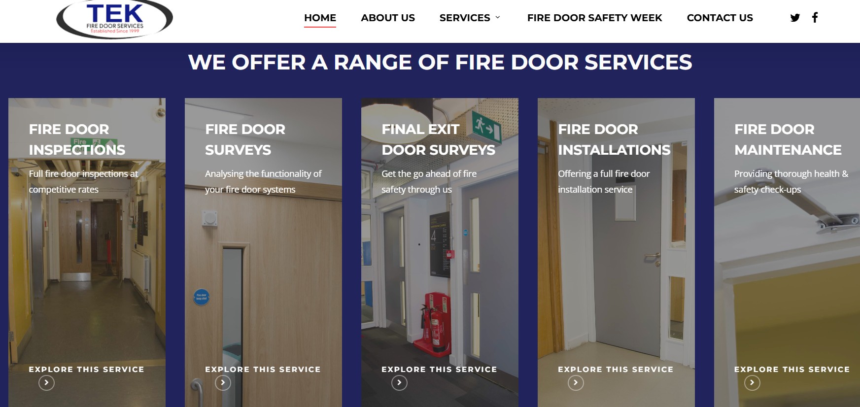 The foundation of Tek Fire Doors’ digital strategy began with the development of a fully optimised, user-friendly website. We recognised the importance of showcasing Tek Fire Doors’ expertise in fire door surveying, fire door condition reports, and installations through a clean, modern design that was both visually appealing and functionally efficient. This website was built to ensure a seamless user experience on all devices, allowing visitors to easily navigate through service offerings and access essential information.